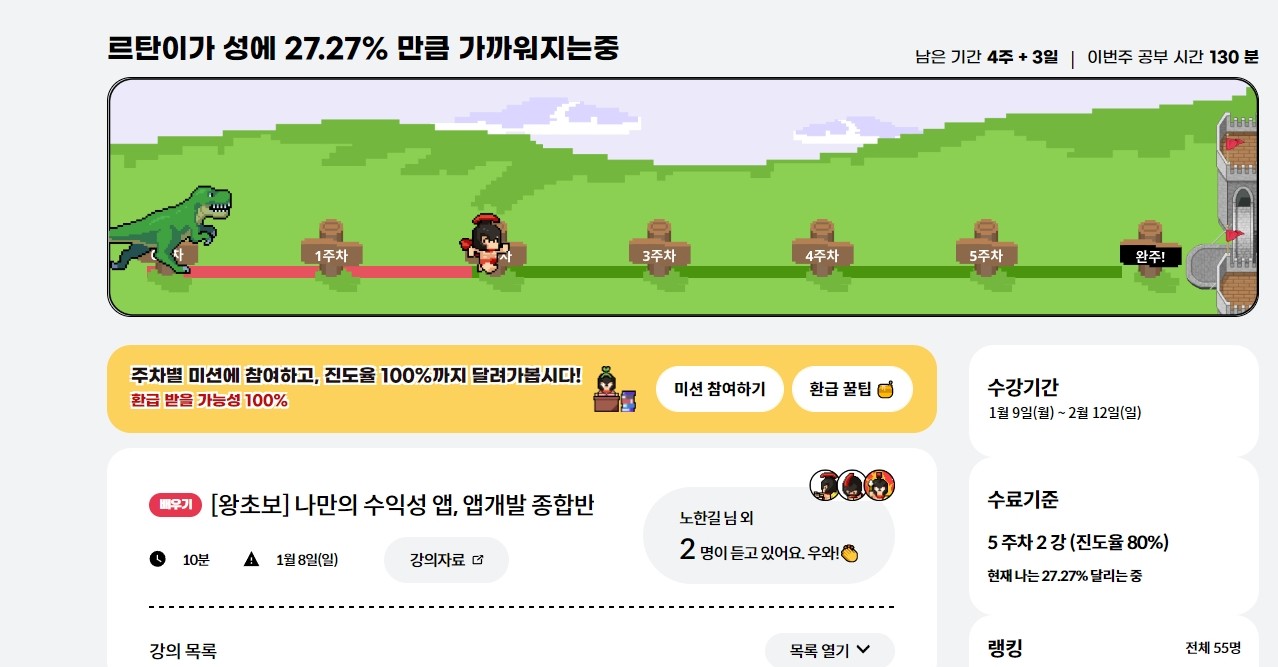 강의 수강기간은 총 5주.